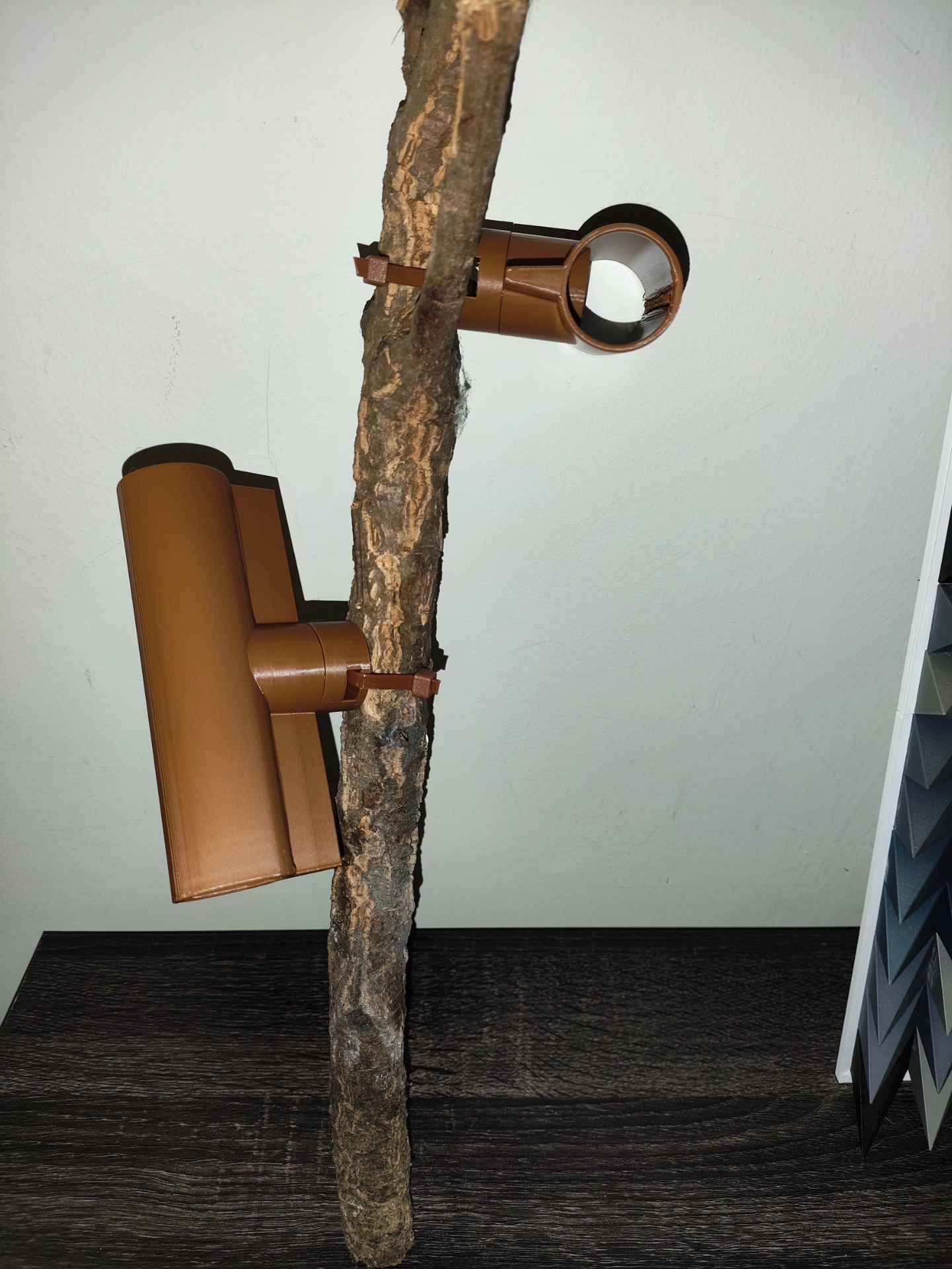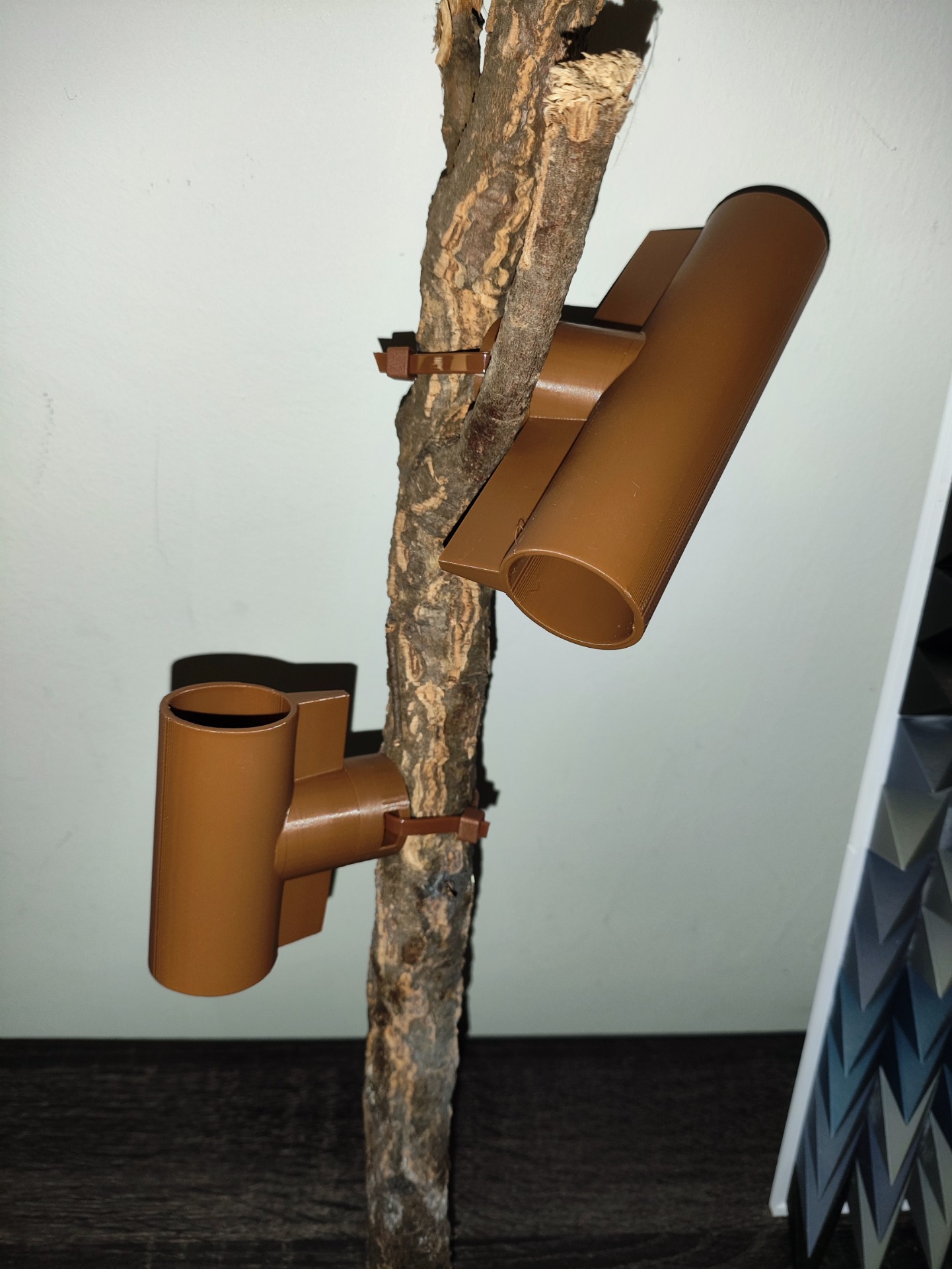 These Tubes are mounted onto sturdy branches with thick cable ties. The actual Tubeis held in place with strong magnets this makes it easy to remove and clean. if you have other items in th is range you can swap and change them around within the terrarium.